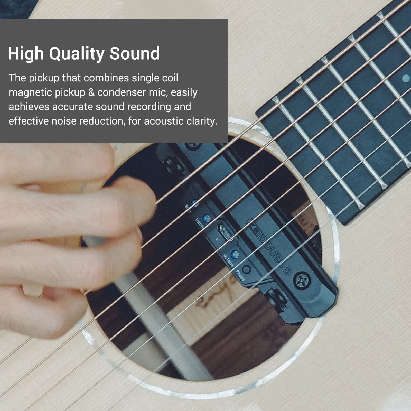 X0 features dual-channel system that combines single coil magnetic pickup & condenser mic, effectively reduces noise, ensures acoustic clarity.